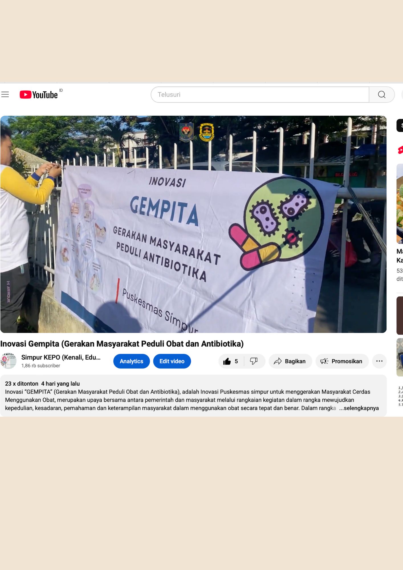Inovasi “GEMPITA” (Gerakan Masyarakat Peduli Obat dan Antibiotika), adalah Inovasi Puskesmas simpur untuk menggerakan Masyarakat Cerdas Menggunakan Obat, merupakan upaya bersama antara pemerintah dan masyarakat melalui rangkaian kegiatan dalam rangka mewujudkan kepedulian, kesadaran, pemahaman dan keterampilan masyarakat dalam menggunakan obat secara tepat dan benar. Dalam rangka mendukung program GEMA CERMAT yang merupakan program yang dicanangkan oleh Kementerian Kesehatan Republik Indonesia pada tanggal 12 November 2015 melalui Kepmenkes No.HK.02.02/MENKES/427/2015. Pada bulan November 2023 inovasi Gempita telah di SK kan oleh Kepala Puskesmas Simpur dalam rangkaian peringatan HKN sebagai program yang wajib dilaksanakan oleh semua instansi pemerintah di bidang kesehatan, termasuk Puskesmas, dengan pembaharuan yaitu, meng-edukasi kader kesehatan sebagai Duta peduli Obat dan Antibiotika.